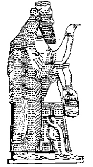 Fig. 10 Ea, the Sumerian god of the waters, parallels Neptune of later times. He was one of the three primal gods of Sumer: Ea- god of water; Enlil- god of earth; and Anu- god of heaven. Each god had a wife or consort, and the wife of Enlil was Ninlil. The LIL root in his and her name came over 3500 years to survive in the names Allah and Allat, the god and goddess of Mecca in Mohammed's day.